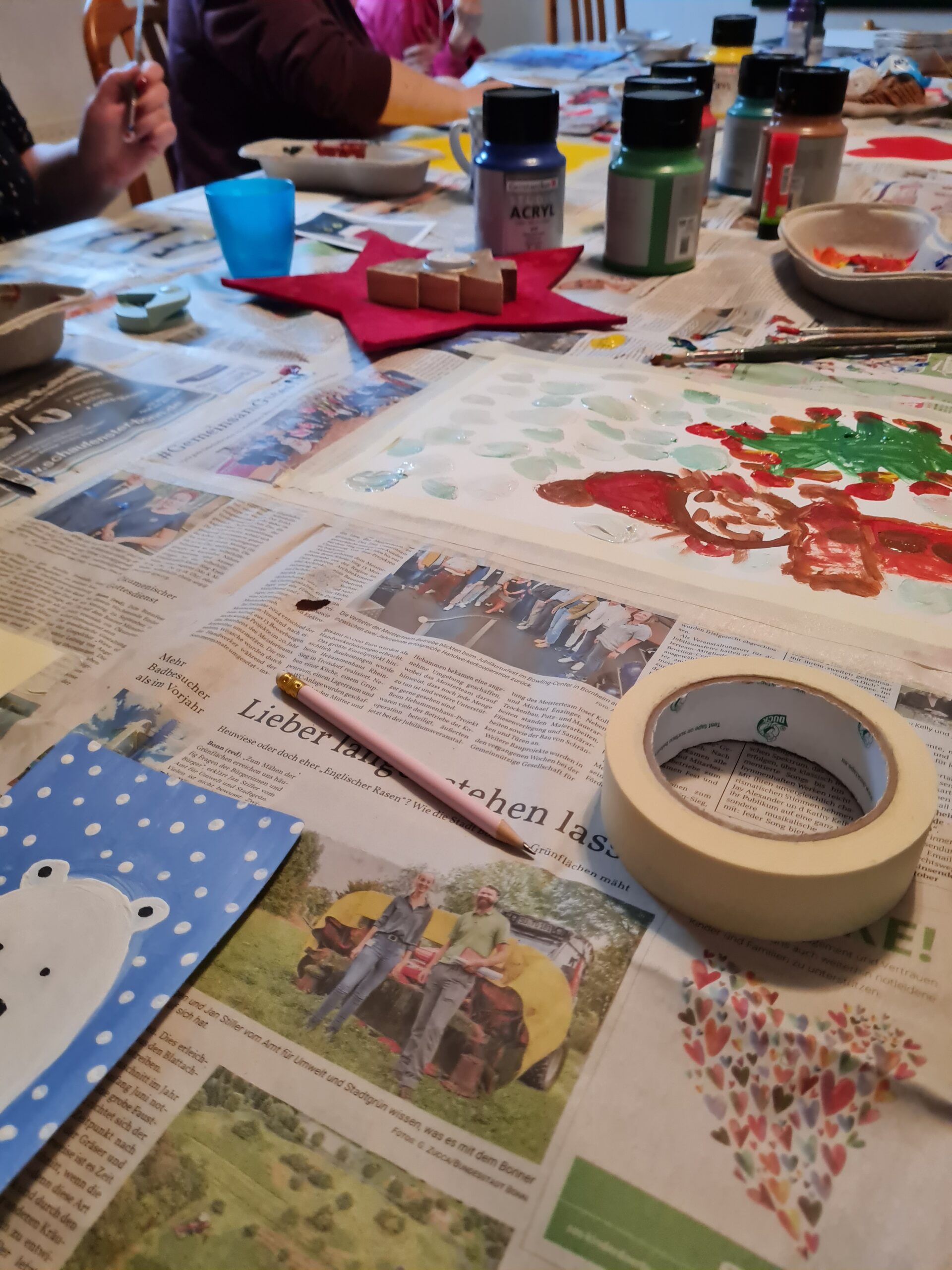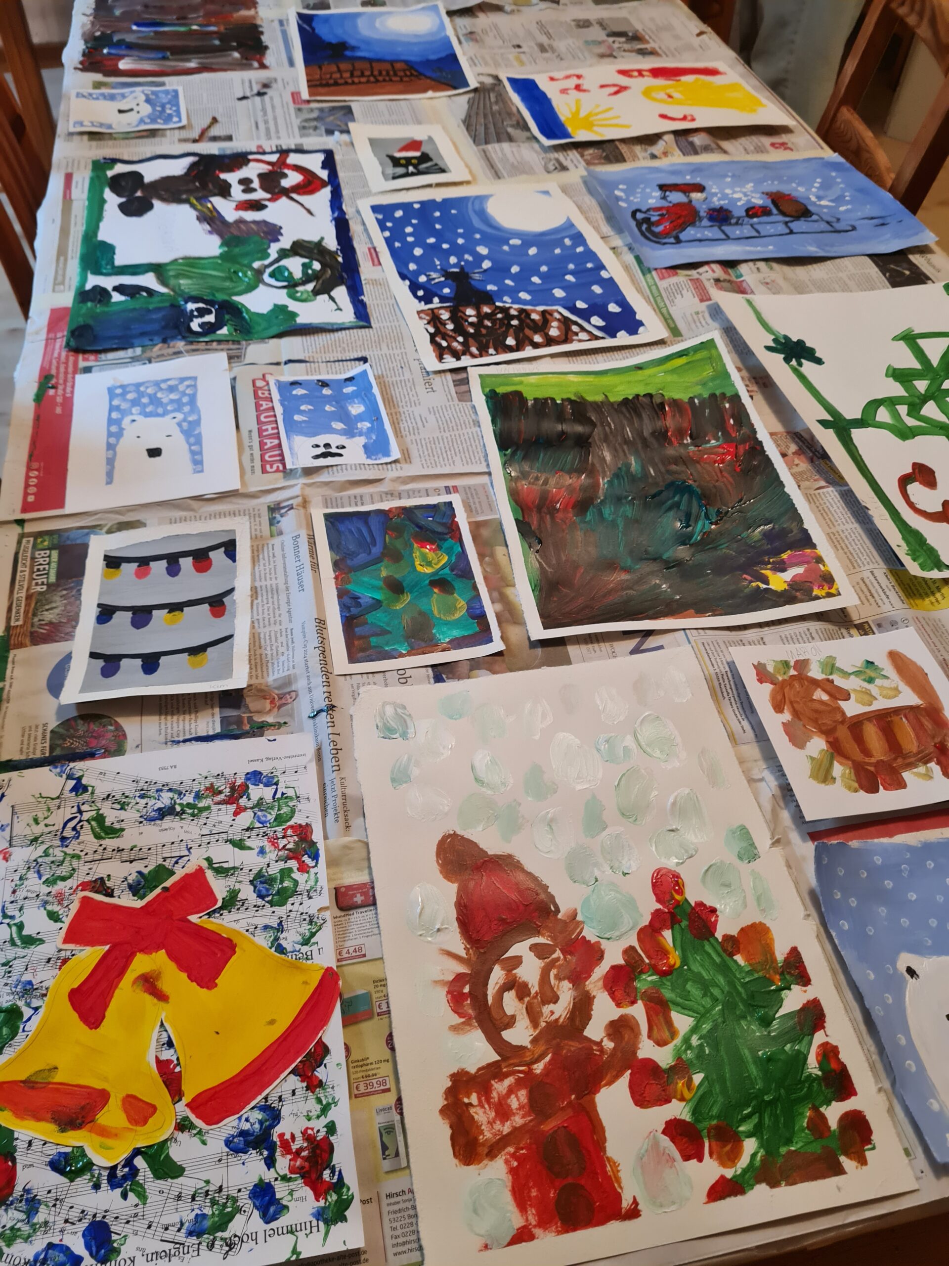 Nur noch etwas mehr als ein Monat – dann ist schon Weihnachten!🎄✨ Höchste Zeit, an Geschenke und Deko zu denken. Deshalb traf sich eine Gruppe von Klient*innen des Karren, hat Pinsel und Papier hervorgeholt und wunderschöne Weihnachtsmotive gemalt. 🎄❄️⭐